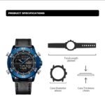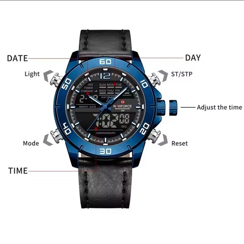 - Functional features;Dual time display,Alarm,stopwatch,complete calendar display and LED light for night vision.