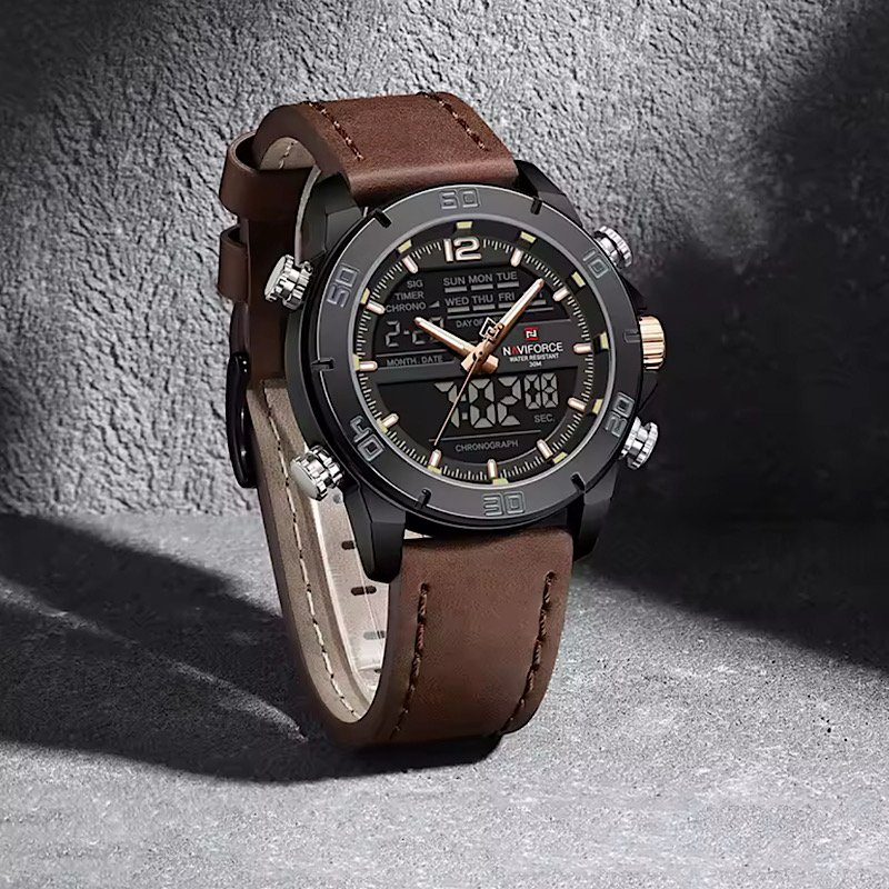 Naviforce Mens Digital Analogue Leather Fashion Watch