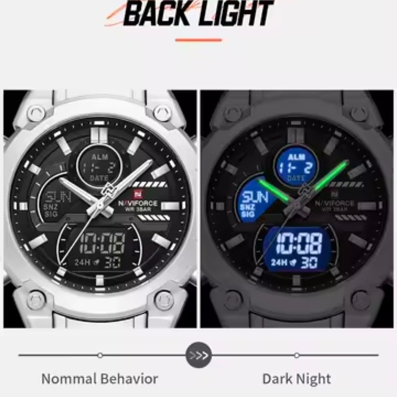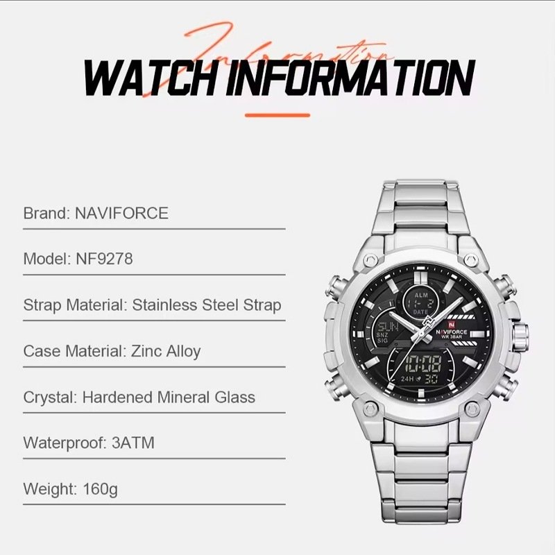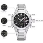 - Functional features; Dual time display, Alarm, stopwatch, complete calendar display and LED light for night vision.