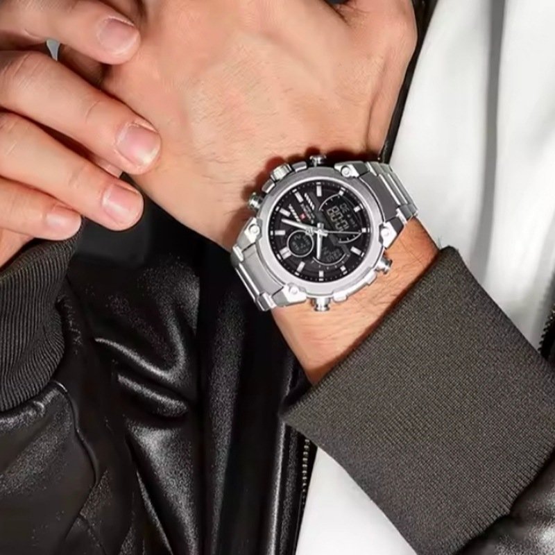 Men’s Dual time 30m water resistant wrist watch with calendar display, alarm and led light for night vision .A carefully crafted timepiece. Order one today and have it delivered right at your door step.
