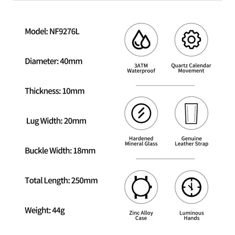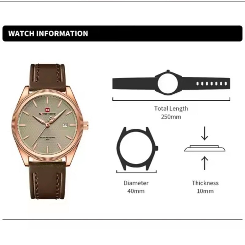 Naviforce 3ATM water resistant Leather watch is a slim classic design watch with date display, a must have fashion accessory for every modern man. Order for your piece today and get it delivered right at your doorstep.