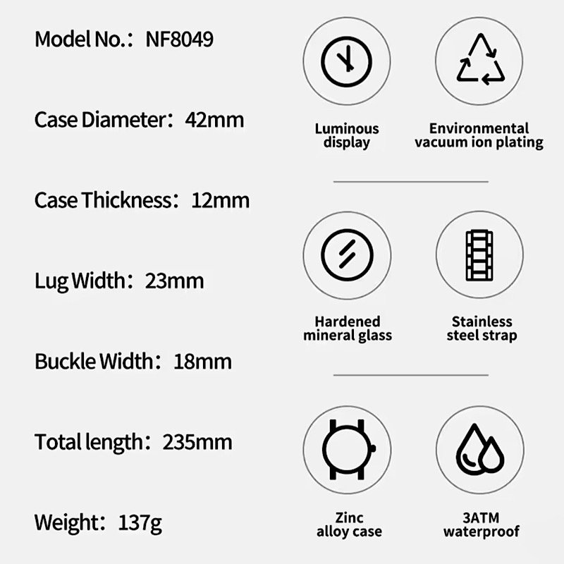 SKU: NF8049SG Categories: Men, Watches Tags: Megir watches, Men watch, Metallic watch