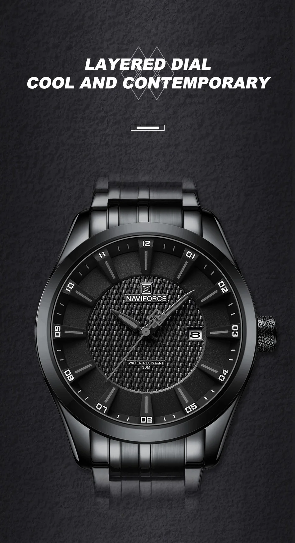 Naviforce Men’s 30m water resistant wrist watch with date calendar display .A carefully crafted timepiece. Order one today and have it delivered right at your door step.