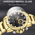 - Functional features; Dual time display, Alarm, stopwatch, complete calendar display and LED light for night vision.