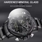 - Functional features; Dual time display, Alarm, stopwatch, complete calendar display and LED light for night vision.