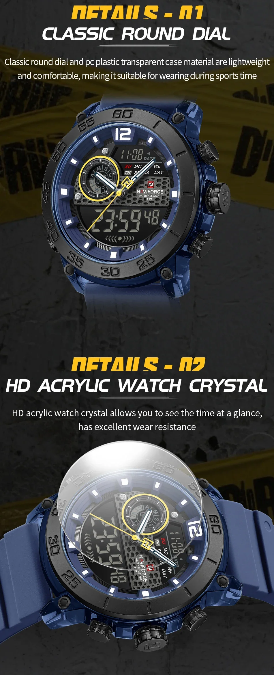 Naviforce Digital Analogue 30M water resistant fashion wrist watch