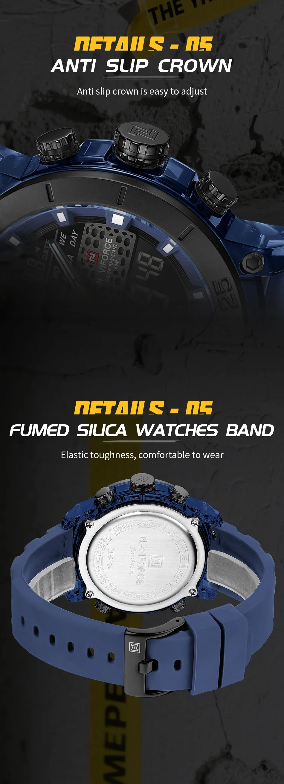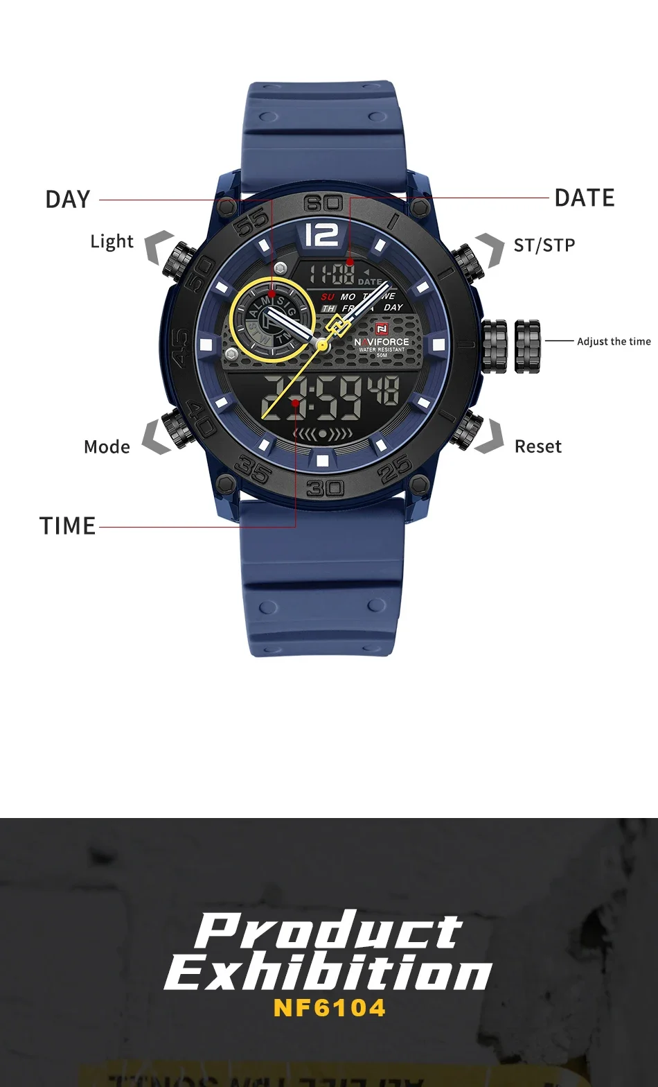 Home Watches Men Naviforce Men’s Rubber straps Dual time Fashion Wrist Watch